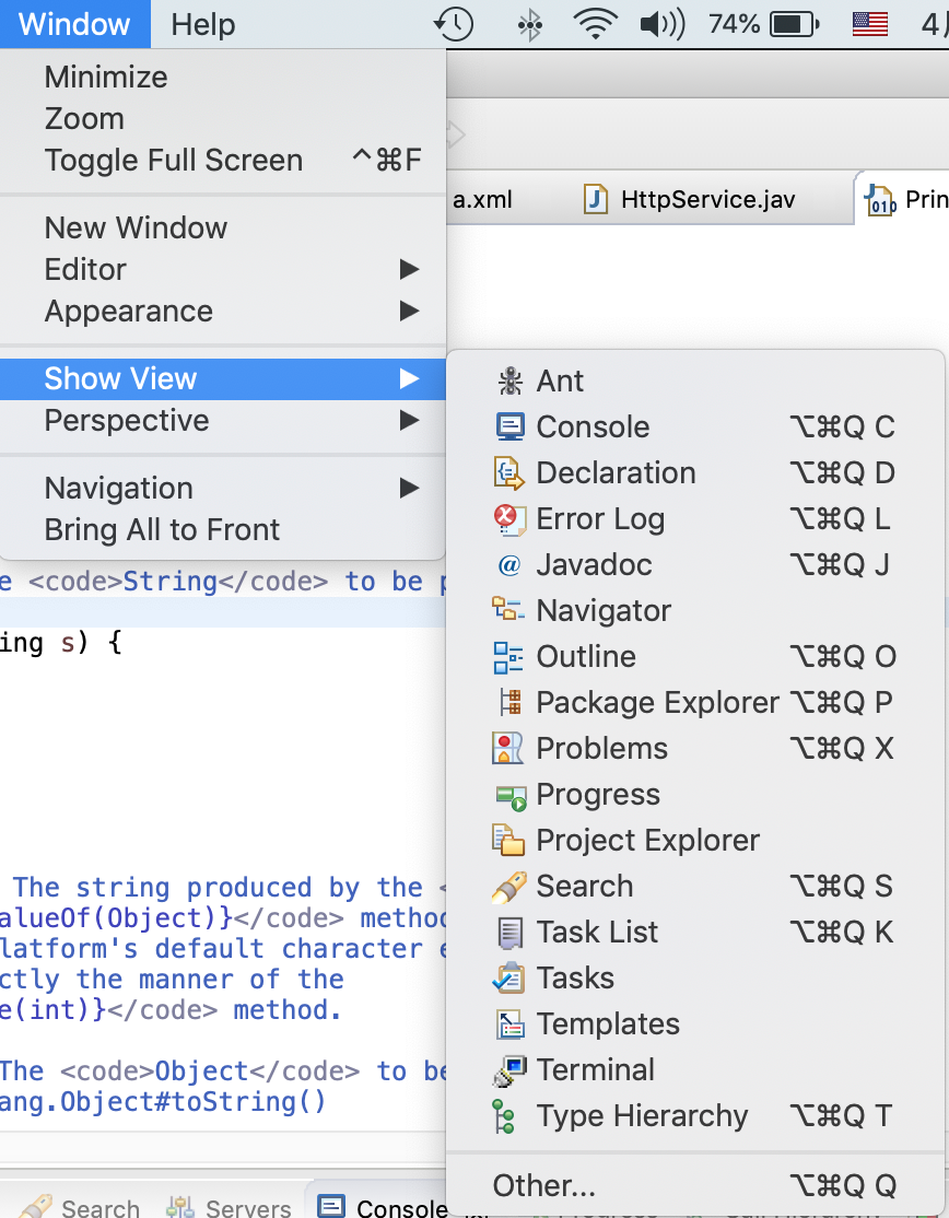 这些区块都是可以拖拉、关闭的。如果不小心关闭了,那么可以从菜单window->Show View找到,如果是中文版,那么就是窗口->显示视图: